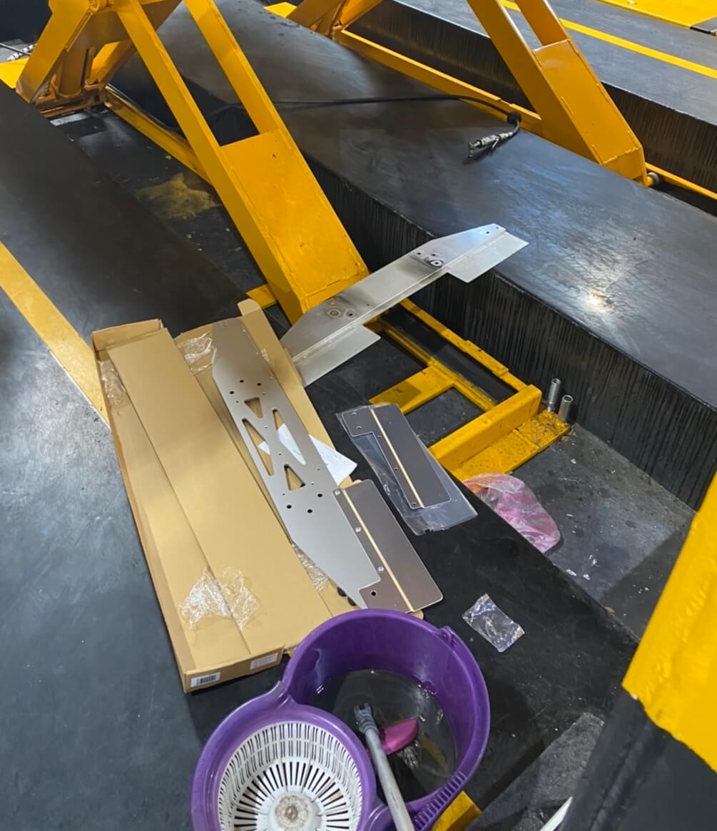原廠看起來像下拉桿的鋁片,支撐車身的剛性作用很小。